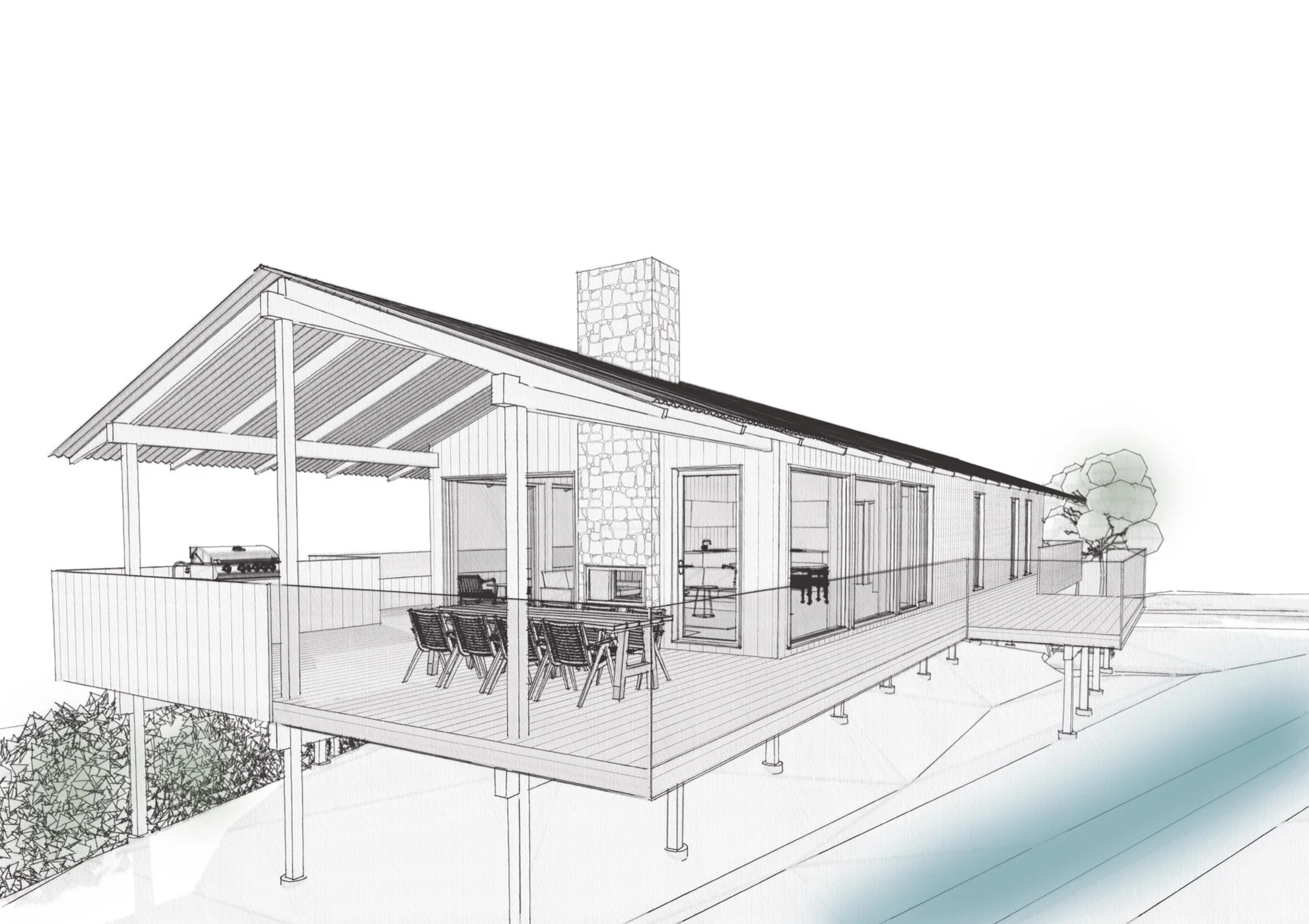 Med idéerna från mötet som grund tar vi fram en skiss som möter era önskemål och de givna förutsättningarna. Vi presenterar utformningen med ritningar och visualiseringar för att ge er en god bild av hur ert hus kommer fungera och upplevas.